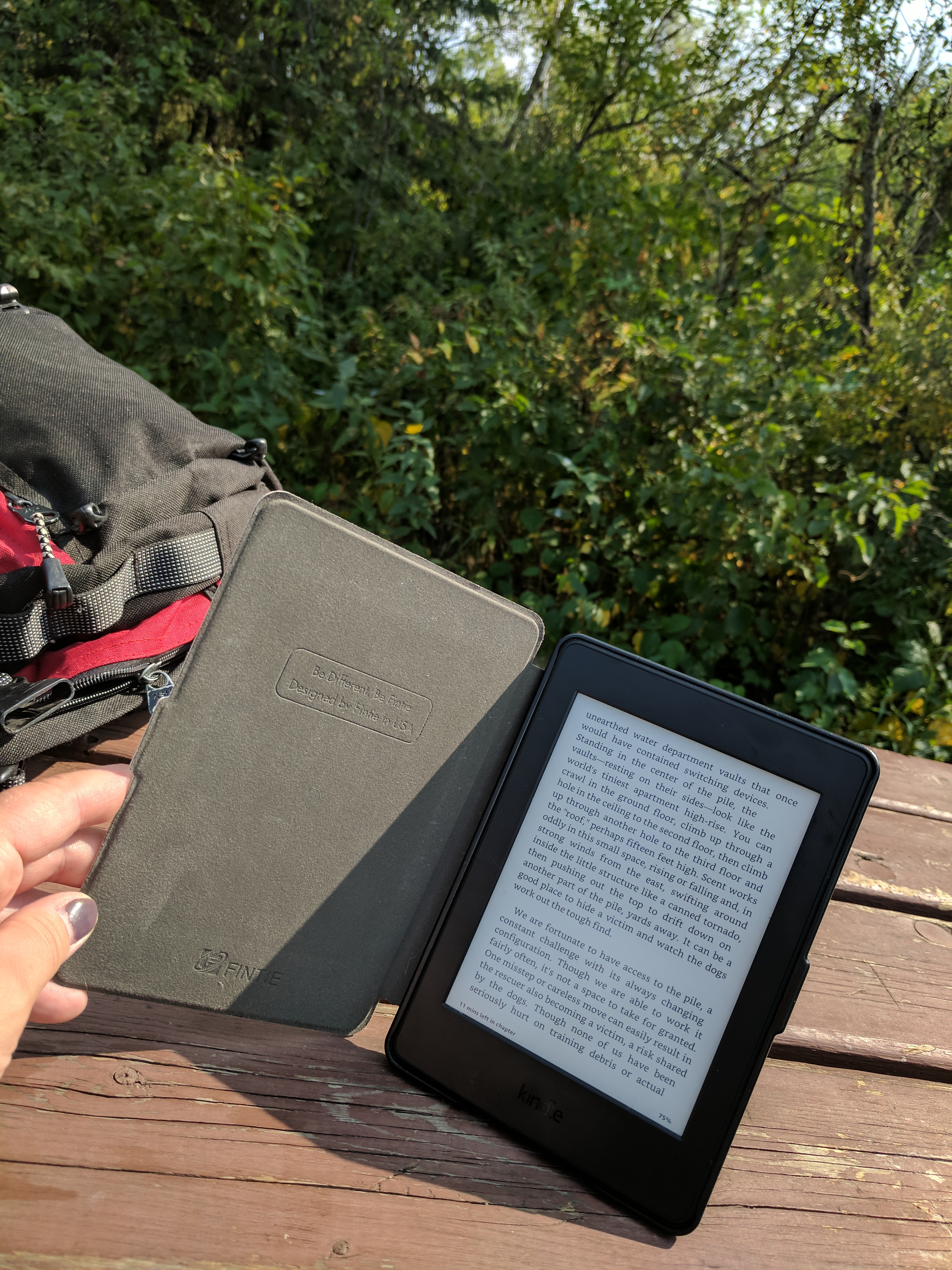 I went to Epinette by myself today with my dog Asha for an afternoon hike. I spent about two hours on the trail and read a book for a half an hour. The trail had a few people hiking and mountain biking. It was nice to be alone but not completely alone.