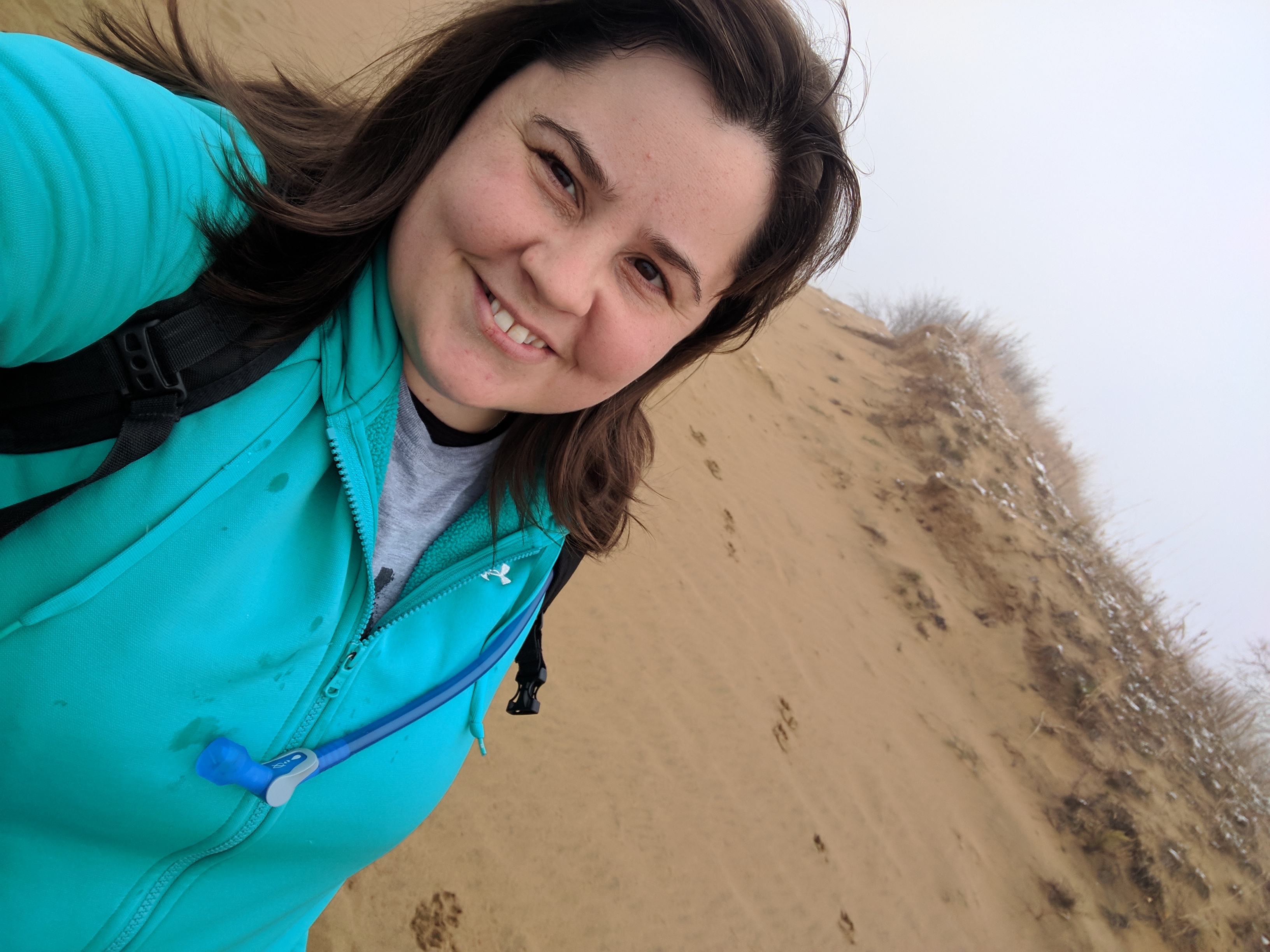 As I stood in place and looking out, I felt a spiritual connection and a belonging but I also felt discouraged. In my mind I kept telling myself that I was out of shape. You’re so damn out of shape. How could you let this happen? I nearly cried twenty minutes before as I struggled to climb a sand dune with slippery wet wooden logs for steps that were placed in the deep sand. I struggled with every step to try and move my body up. Even when I found good footing, my legs screamed with every move of my muscles.