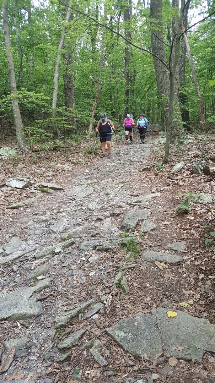 The rocks along the 500 foot descent in elevation to Rocky Ridge Shelter for lunch butchered my shoes. I literally felt like crying with every step I took. The weight of my pack pushed the bottom of my feet into the jagged rock.