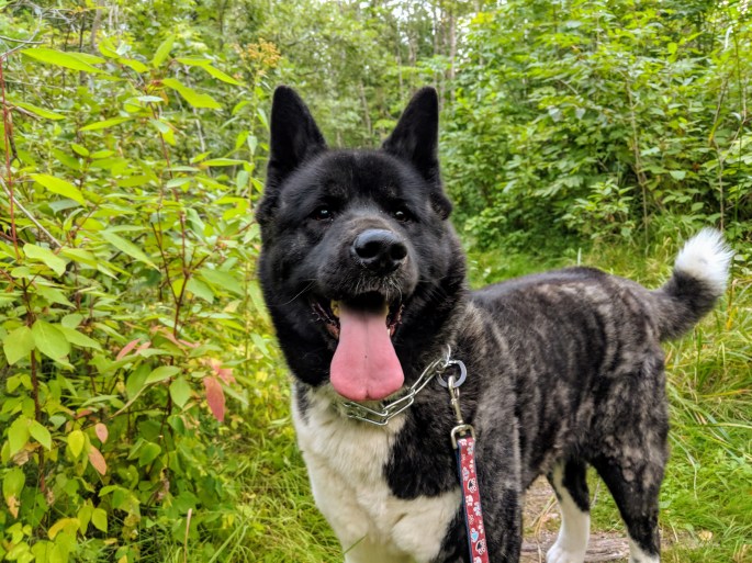 Asha’s energy level has mellowed out as she’s become older. She still has a bit of puppy left in her and I think she always will. Her breed, an American Akita is typically not a hyper, high-energy dog and does well with a daily 30-minute walk. We go for longer walks when we have time.