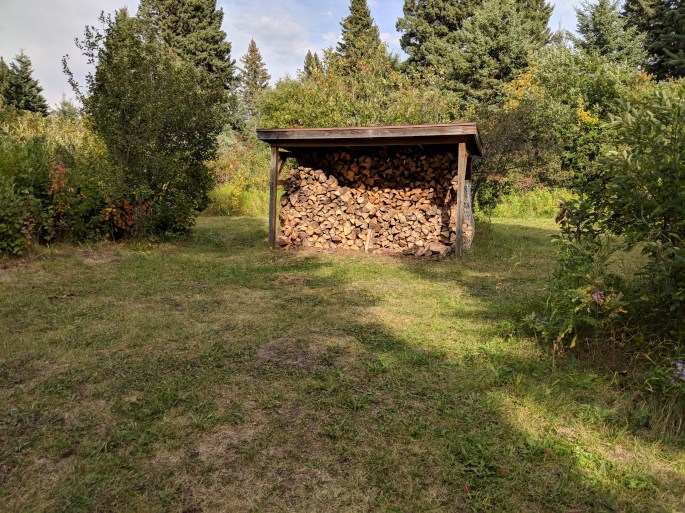 We settled into make dinner and rain came off and on. We took cover under the firewood shelter. I had no desire to bring a wet dog into the tent so I am thankful we were able to huddle up under the shelter. The rain did not last long.