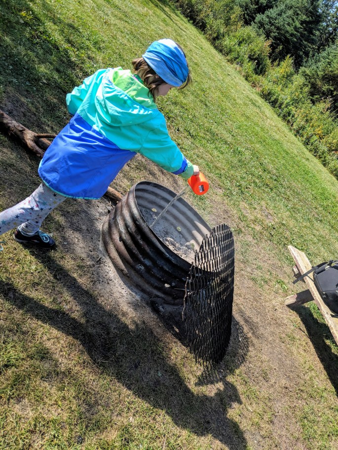 The kids filled up cups of water from the near by creek to help extinguish the fire. We hung around for an extra half hour during the whole process to ensure the fire was out. We were not impressed that we had to tend to their fire in addition to ours to ensure they were both out. I suppose the silver lining is the situation presented a good learning opportunity for the kids.