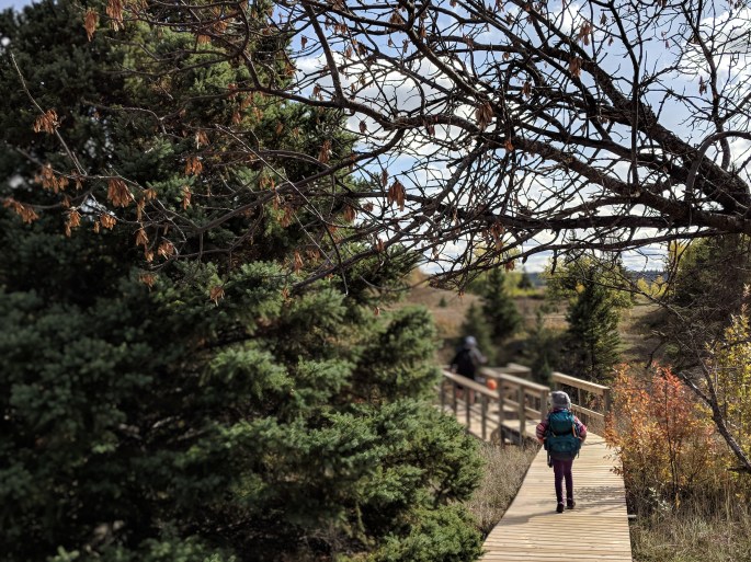 I surrounded myself with nature this morning. Red, oranges, and yellows mixed in with browns and greens greeted me along every step of the way at Spruce Woods Provincial Park. The sun was shining bright and it was a gorgeous fall day.