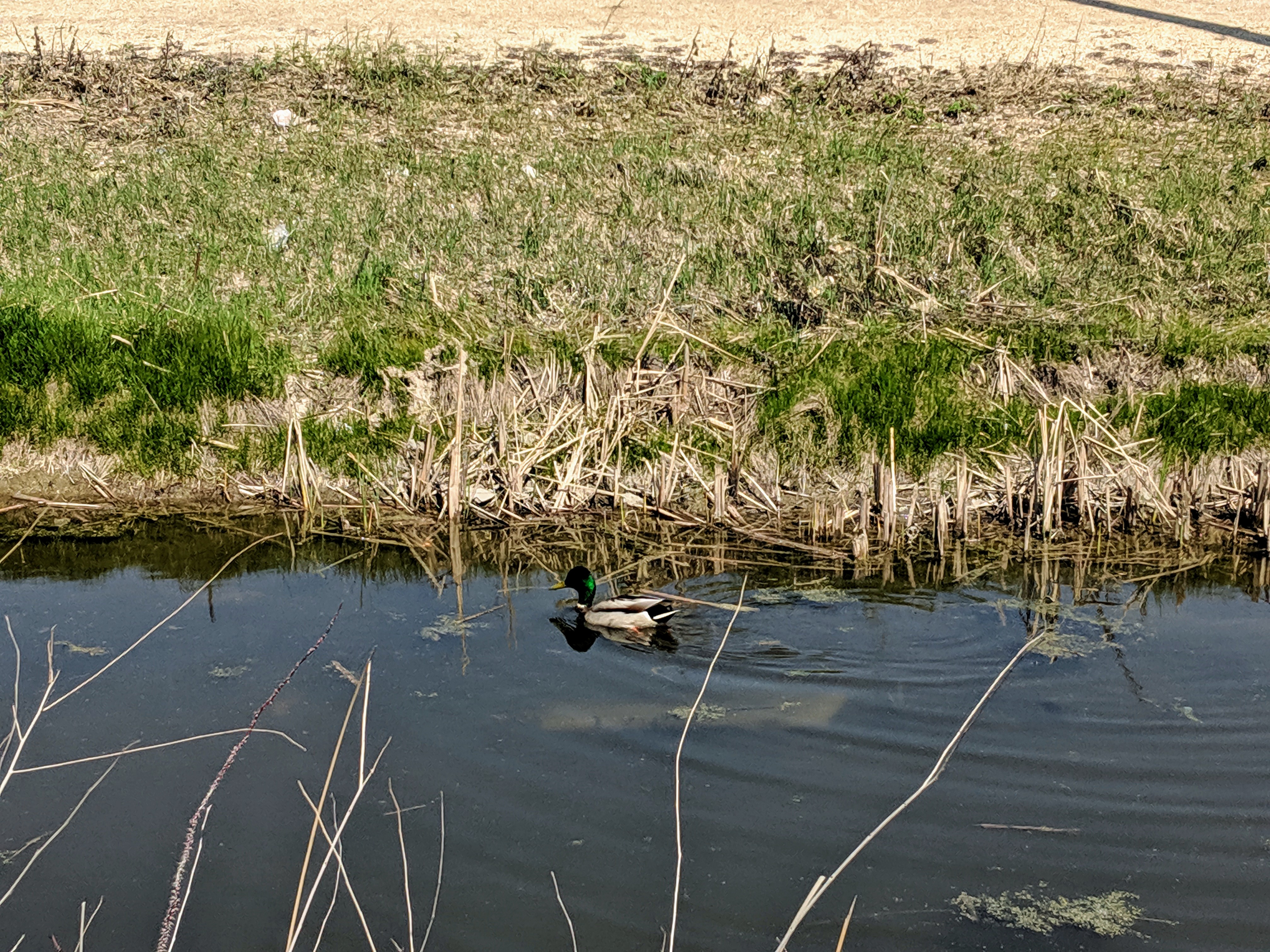 On each walk, I saw the same duck that was swimming and diving for food in the filth that humans have left for him. I am a Disney Princess in jeans and always talk to animals. We had a good conversation about finding the silver lining in our environments. If he wasn’t getting what he needed in that ditch, he would just leave. There is a residential pond with a sprinkler not far from this ditch that I am sure he has seen while flying. Something in this ditch, beyond the surface makes him stay.