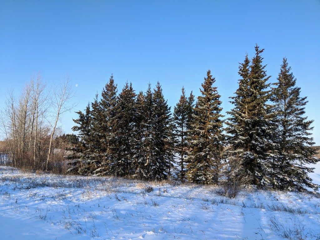 Returning from the way we came along side Kingfisher Lake, I enjoyed the sparkle and glisten of the snow and stared off into the distance where the moon still hung in the sky.
