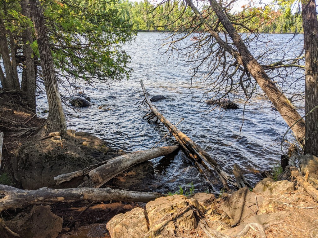 I recall the first time that I was transported to Hunt Lake Trail while meditating. I was at a journaling and guided-visualization workshop in the fall of 2018. I went to the spot in my mind without intention. The universe knew that I needed to see the trail from the water and in my mind, I kayaked along the shore of West Hawk Lake and simply floated in front of the trail. To this day, I think it is why I love extended breaks on the water while on Hunt Lake Trail. Experiencing the water and being still with it is part of what draws me to the trail. It is a spiritual connection.